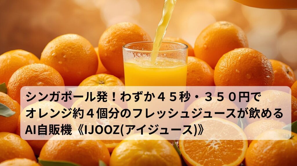 シンガポール発!わずか45秒・350円でオレンジ約4個分のフレッシュジュースが飲めるAI自販機《IJOOZ(アイジュース)》