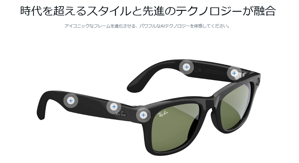 こうした日常利用の入り口として注目されているのが、Ray-Ban Meta Smart Glassesです。音声AIとカメラ機能を組み合わせることで、写真撮影や情報取得を自然な動作の中で行える点が評価されています。