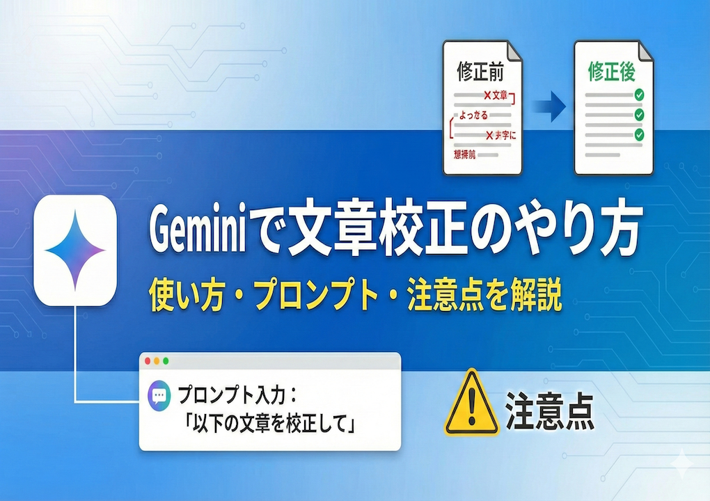 「Geminiで文章校正はできるの?」「具体的な使い方や注意点が知りたい」と感じている方も多いのではないでしょうか。 Geminiを活用すれば、無料で手軽に文章校正ができ、ビジネスメールや資料作成の時間短縮はもちろん、質を高めることにもつながります。... -