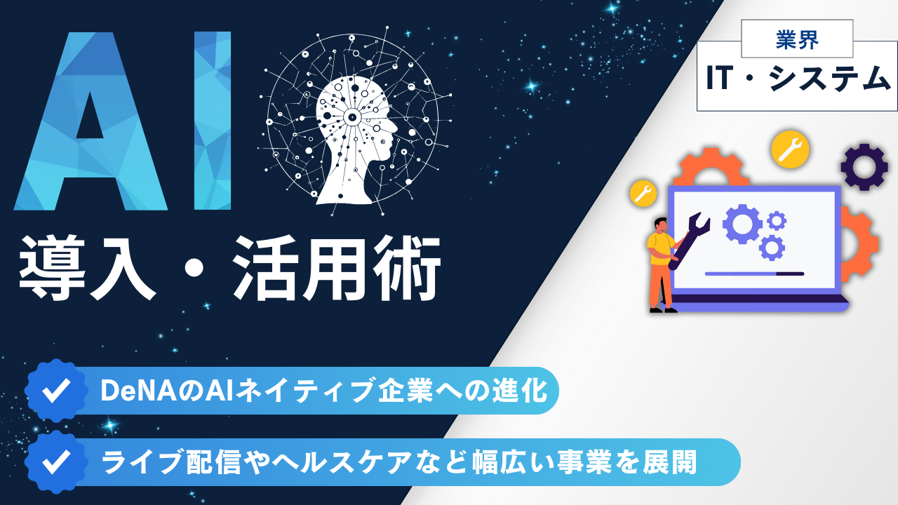 株式会社ディー・エヌ・エー(DeNA)は1999年に創業し、日本を代表するインターネット企業の一つとして成長を続けてきました。主力のゲーム事業に加えて、スポーツチーム経営、ライブ配信、ヘルスケア、オートモーティブなど幅広い分野で事業を展開しています。近年は「AIにオールイン」を掲げ、既存サービスの強化と新規領域の開拓を両立させる戦略を進めています。多角的な事業基盤を持つことが、AI活用における強みの一つとなっています。