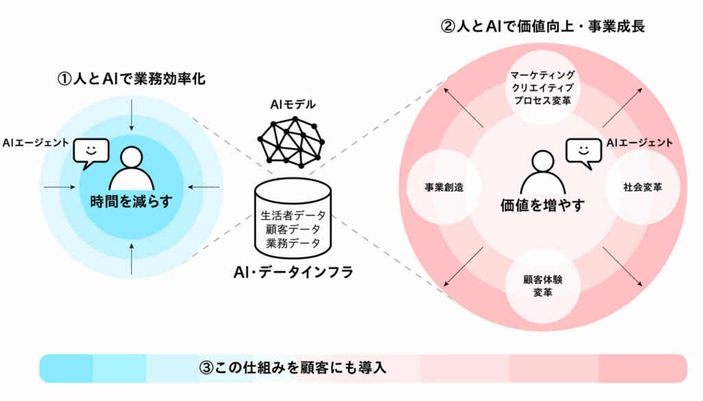 ∞AIは、国内の電通グループが提唱するAI戦略「AI For Growth 2.0」の中核を担っています。