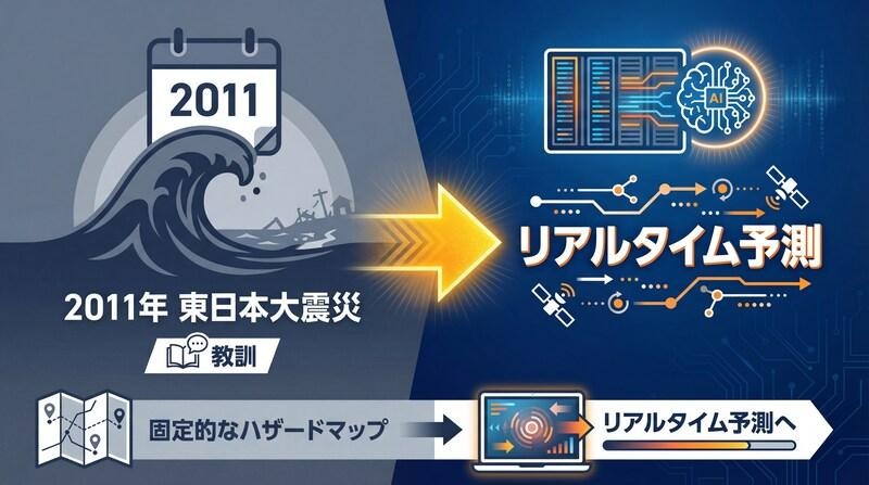 富士通株式会社は、東北大学や東京大学地震研究所などと共同で、AIを活用した新しい津波予測技術の開発に取り組みました(出典:富士通のプレスリリース、東北大学の研究発表)。