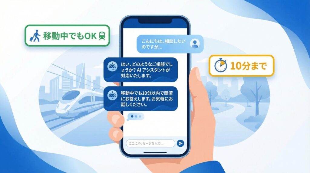 チャット欄にテキストを貼り付け、要約の指示を出せばすぐに結果が返ってきます。移動中のスマホからでも操作でき、急ぎの報告作成などに役立ちます。