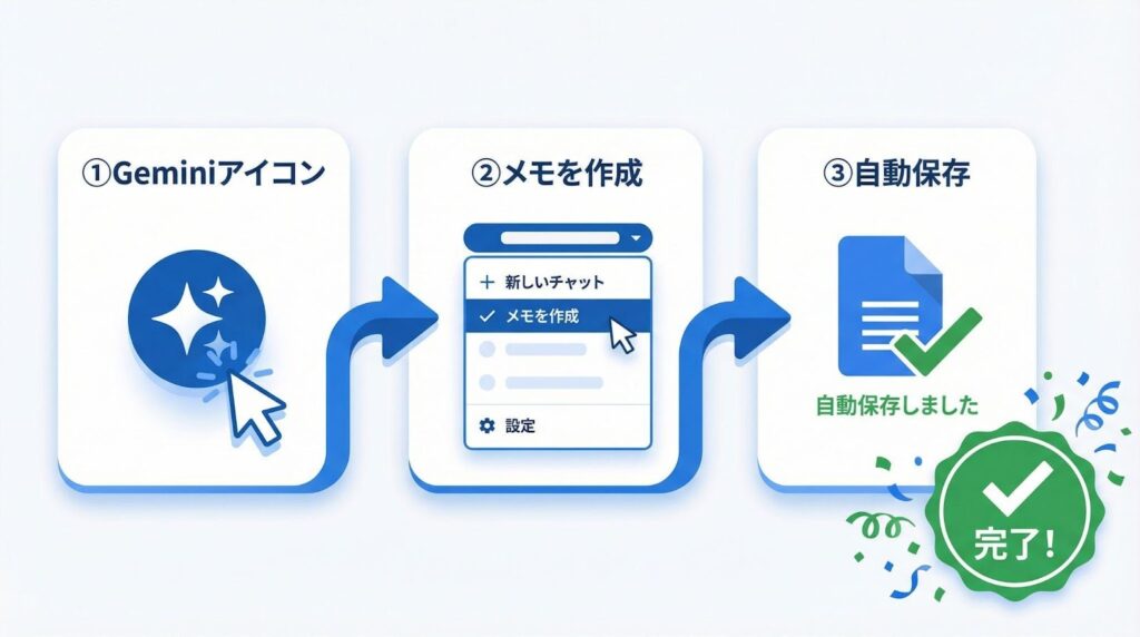 手元のテキストメモや短時間の音声なら、通常のGeminiアプリやブラウザ版で十分です。チャット形式で対話しながら「もっと短く」といった修正指示を出しやすいからです。