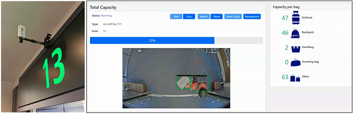 フライト遅延の原因となる手荷物問題の解決に向けて、本ソリューションは革新的なアプローチを採用しています。AIが搭乗口を通過する手荷物の総占有スペースをリアルタイムで推定し、収納棚の満杯を事前に予測する仕組みです。