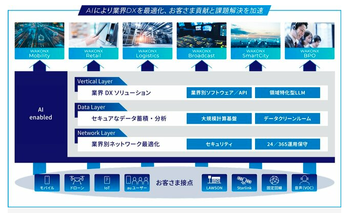 KDDIのWAKONX 生成AIプラットフォームは、社内外で業務革新を加速し、さまざまな業界のDX(デジタルトランスフォーメーション)を推進しています。
