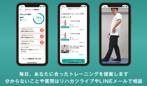「リハカツ」では、専門家の指導とAIの分析を組み合わせてリハビリを進めていきます。