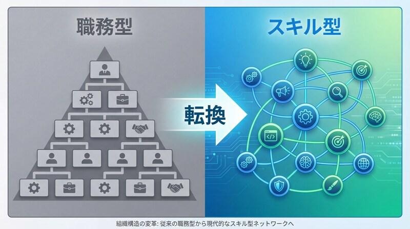 従来の職務(ジョブ)型の管理では、多くの企業が激しい技術変化に対応できません。デロイトの報告でも、従来の職務定義だけでは人材の能力を正確に把握できないと指摘されています。