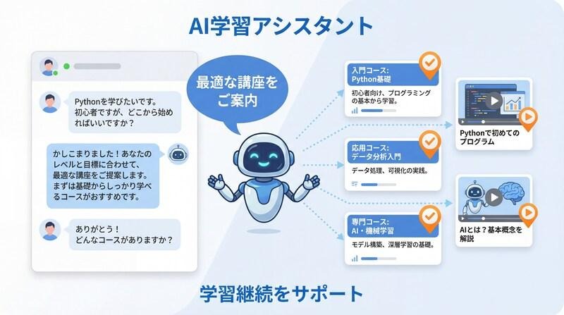 一方で、コンテンツが膨大なため、学習者は最適な講座を選びにくく、学習開始のハードルになっていました。