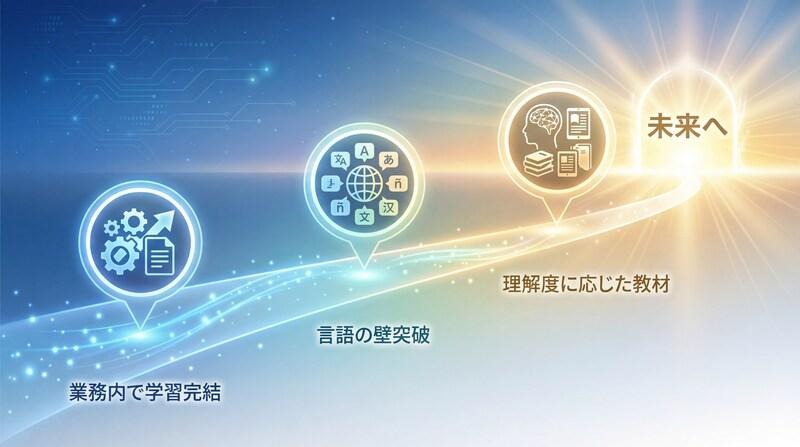 AI技術の進化により、企業内教育は「コンテンツの視聴」から「業務フローへの統合」へと変化します。