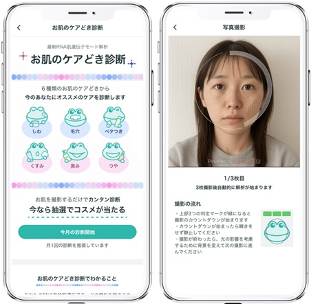 美容系総合サイト「@cosme」を企画・運営している株式会社アイスタイルが、花王株式会社とパーフェクト株式会社*¹の技術を活用して、@cosmeアプリ内にスマートフォンで素顔の写真を撮影するだけで、皮脂中に含まれるRNA(皮脂RNA)発現情報に基づく肌タイプを即時に推定できる「肌遺伝子モード判定」技術を、「お肌のケアどき診断」として搭載しました。