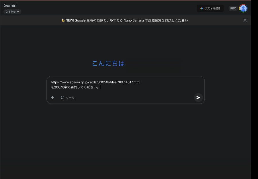 Geminiの無料版でもニュース記事やブログ記事程度であれば問題なく要約可能です。日常的に情報を整理する用途や学習補助には十分活用できます。ただし、無料版は入力できる文字数や利用回数に制限があるため、長文のレポートや複数記事の連続要約には不向きです。