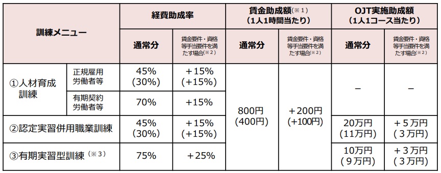 詳しい詳細に関しては「人材開発支援助成金」の公式ページをご確認ください。