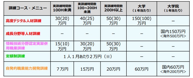 詳細な内容に関しては「令和7年度版 人への投資促進コースのご案内」詳細版パンフレットを参照ください。